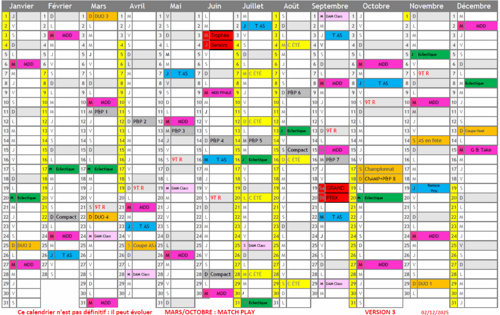 CALENDRIER 2026 AS PESSAC