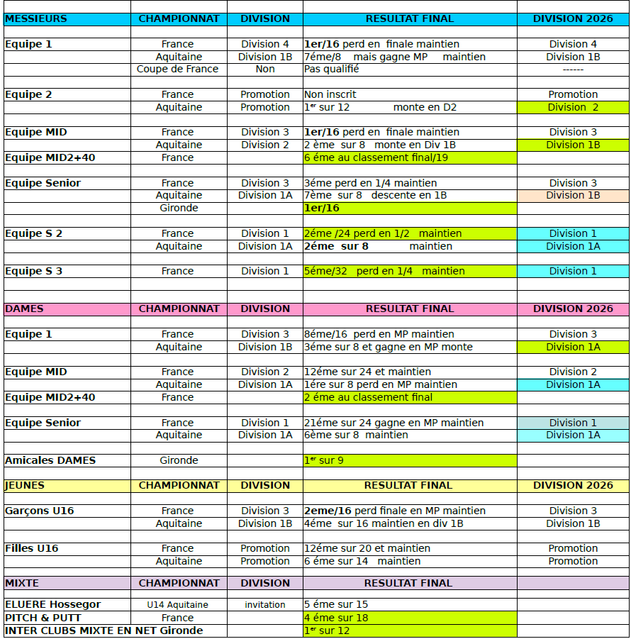 | 1ERE DIVISION SENIORS DAMES |